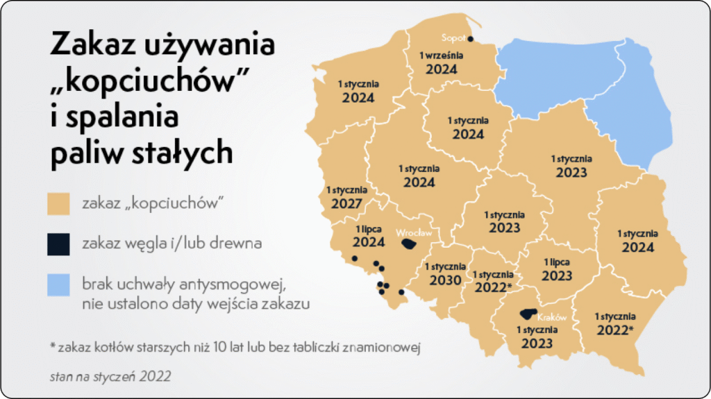 Decyzje antysmogowe wprowadzają ograniczenia dla mieszkańców konkretnych rejonów dotyczące używanych źródeł ciepła oraz instalacji grzewczych w nowo budowanych budynkach. Mogą to być zarówno zakazy całkowite, jak i częściowe dotyczące najbardziej emisyjnych typów urządzeń grzewczych.